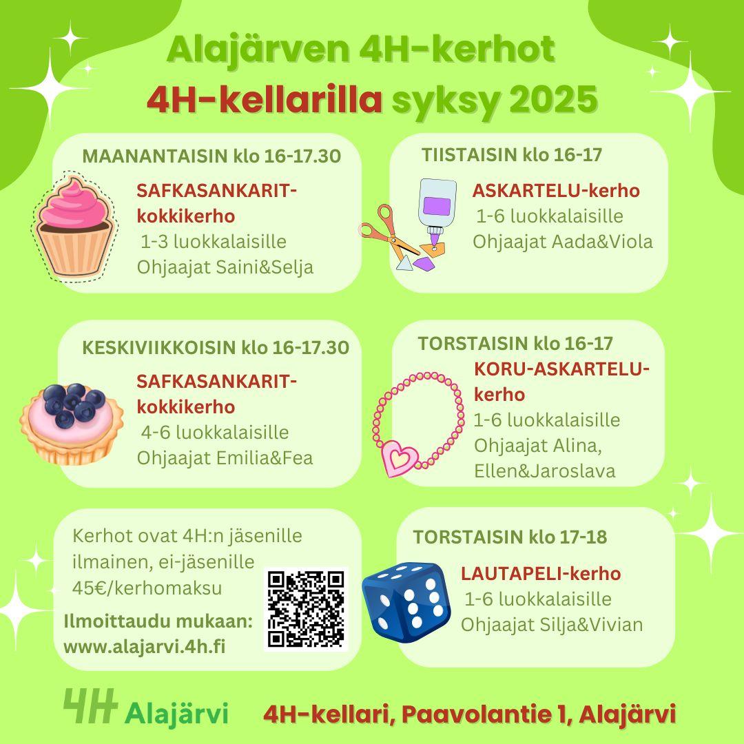Kerhot alkaa viikolla 38. Kerhoihin on ennakkoilmoittautuminen.