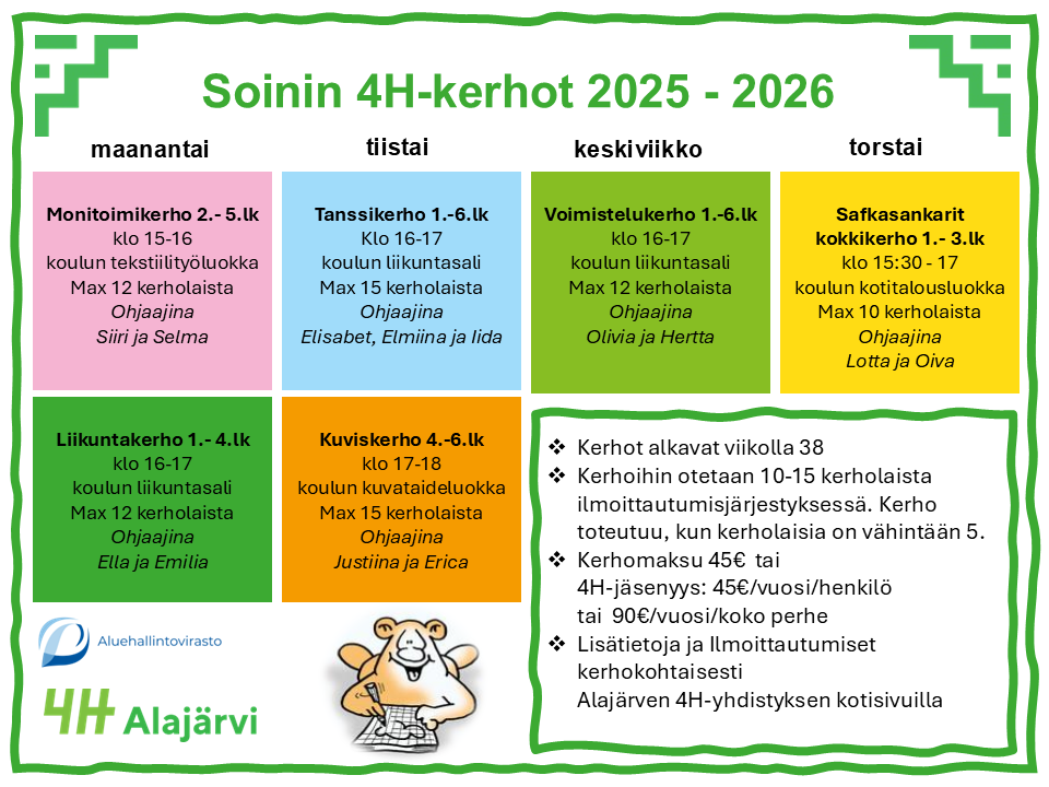 Kerhokausi 2025 - 2026 alkaa syyskuussa viikolla 38.