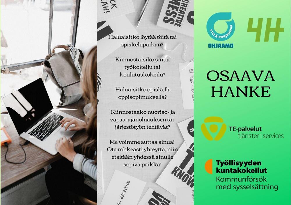 Osaava-hanke on käynnistynyt Alajärven 4H-yhdistyksessä tammikuussa 2020. Olemme työllistymistä edistävä palvelu, jota rahoittaa TE- palvelut. Teemme työtä ohjaamoissa Etelä-Pohjanmaan alueella sekä Alajärvellä ja Vimpelissä yhteisesti sovituissa tiloissa. Mukana ovat myös 16 Etelä-Pohjanmaan 4H-yhdistystä, joiden työtehtäviin hankkeen asiakkaiden sekä yli 30-vuotiaiden on mahdollista päästä hankkimaan työkokemusta nuoriso- ja vapaa-ajan ohjauksen sekä järjestötyön parissa.