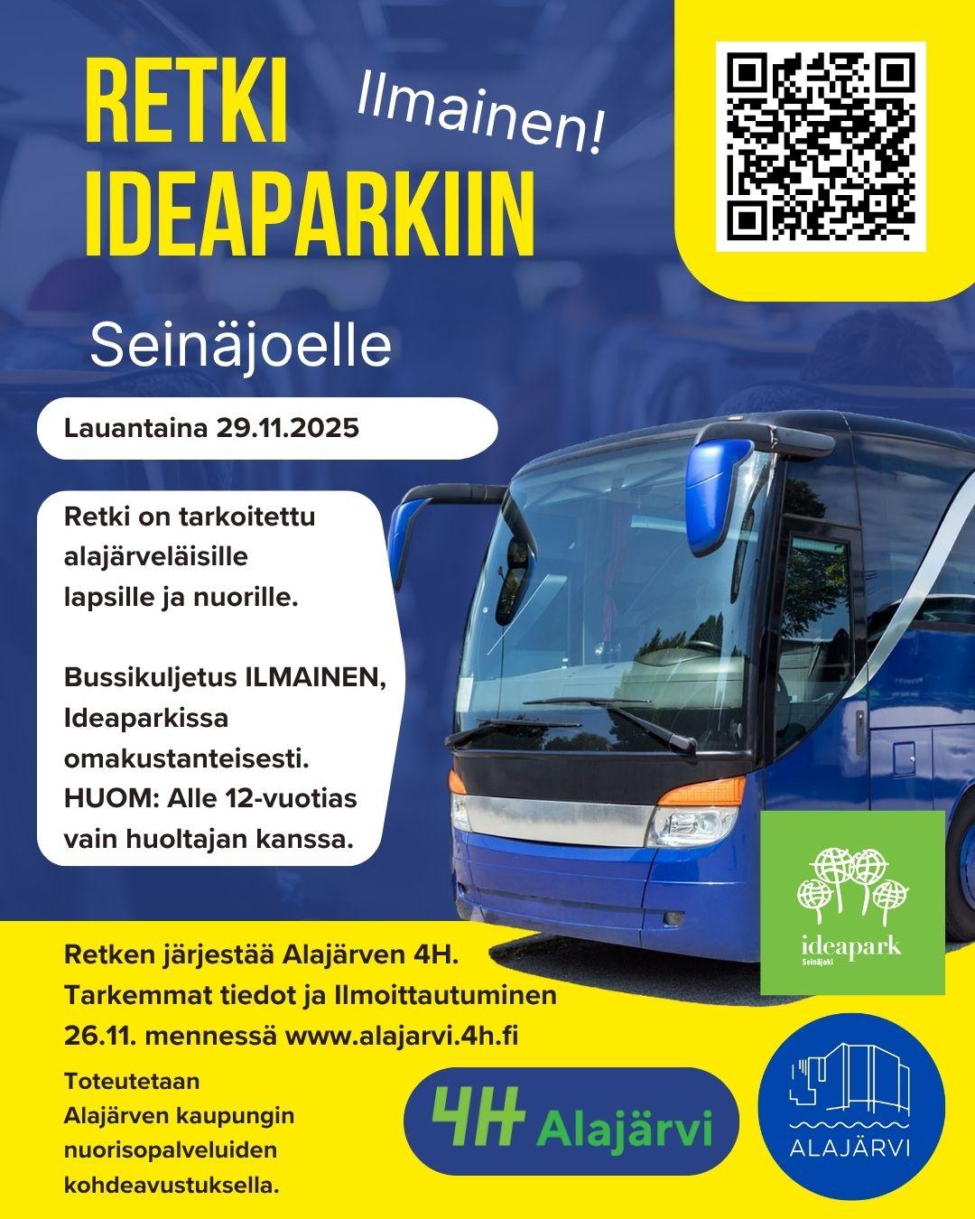 Lähde Seinäjoelle Ideaparkkiin lauantaina 29.11.2025! Ideaparkissa voit shoppailla, käydä syömässä ja kahvilla sekä viettää aikaa kavereiden kanssa. Retki on tarkoitettu alajärveläisille lapsille ja…