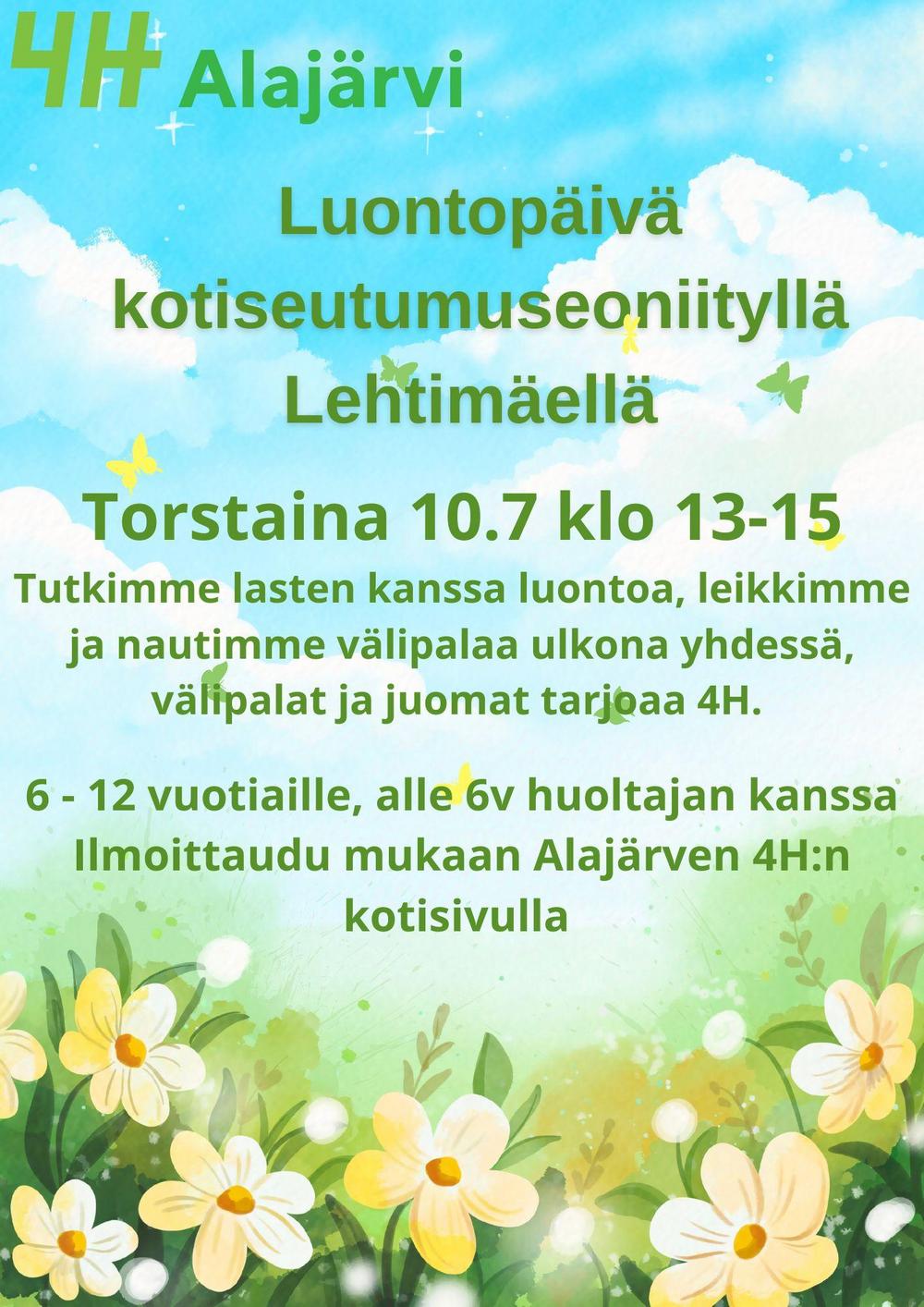 SEIKKAILIJAT-LEIRI 9.-13.6.2025 Seikkailijat-leiri järjestetään 4H-kellarilla Alajärvellä (Paavolantie 1). Leiri kestää maanantaista perjantaihin, päivittäin klo 9.00-14.00. Leiri on tarkoitettu…