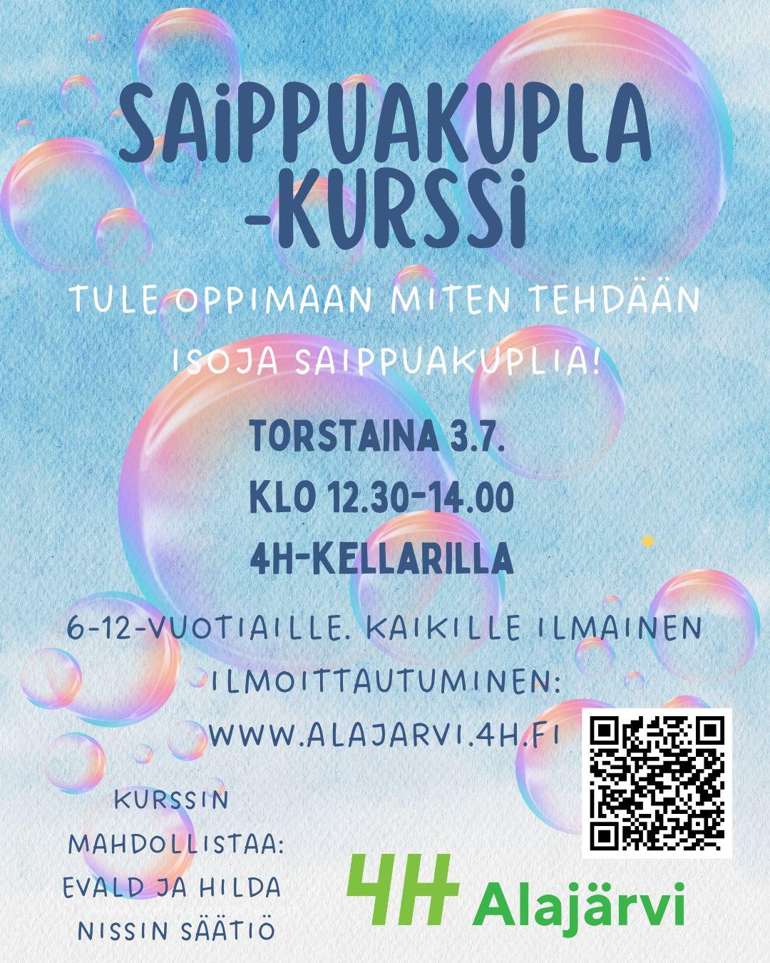 Tervetuloa Saippuakupla-kurssille. Kurssilla tehdään itse saippuakupla-ainetta ja saippuakupla"väline", jolla pystyy tekemään isoja saippuakuplia. Lisäksi pelataan ja leikitään yhteisleikkejä.…