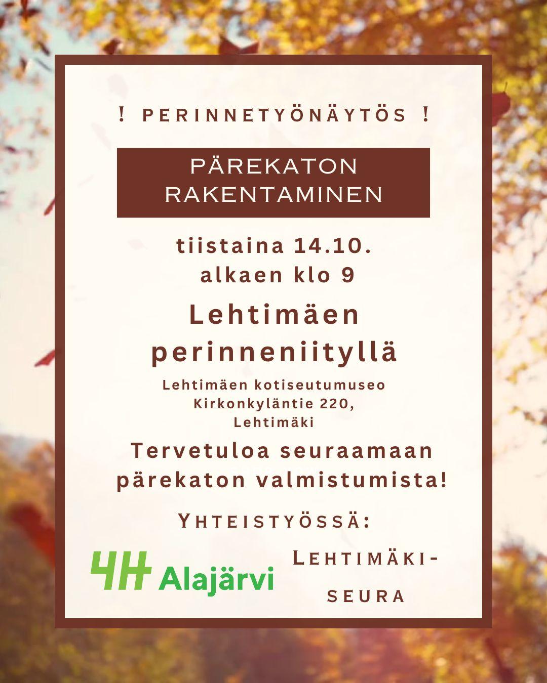 Paikka: Lehtimäen Kotiseutumuseo, Kirkonkyläntie 220, Lehtimäki