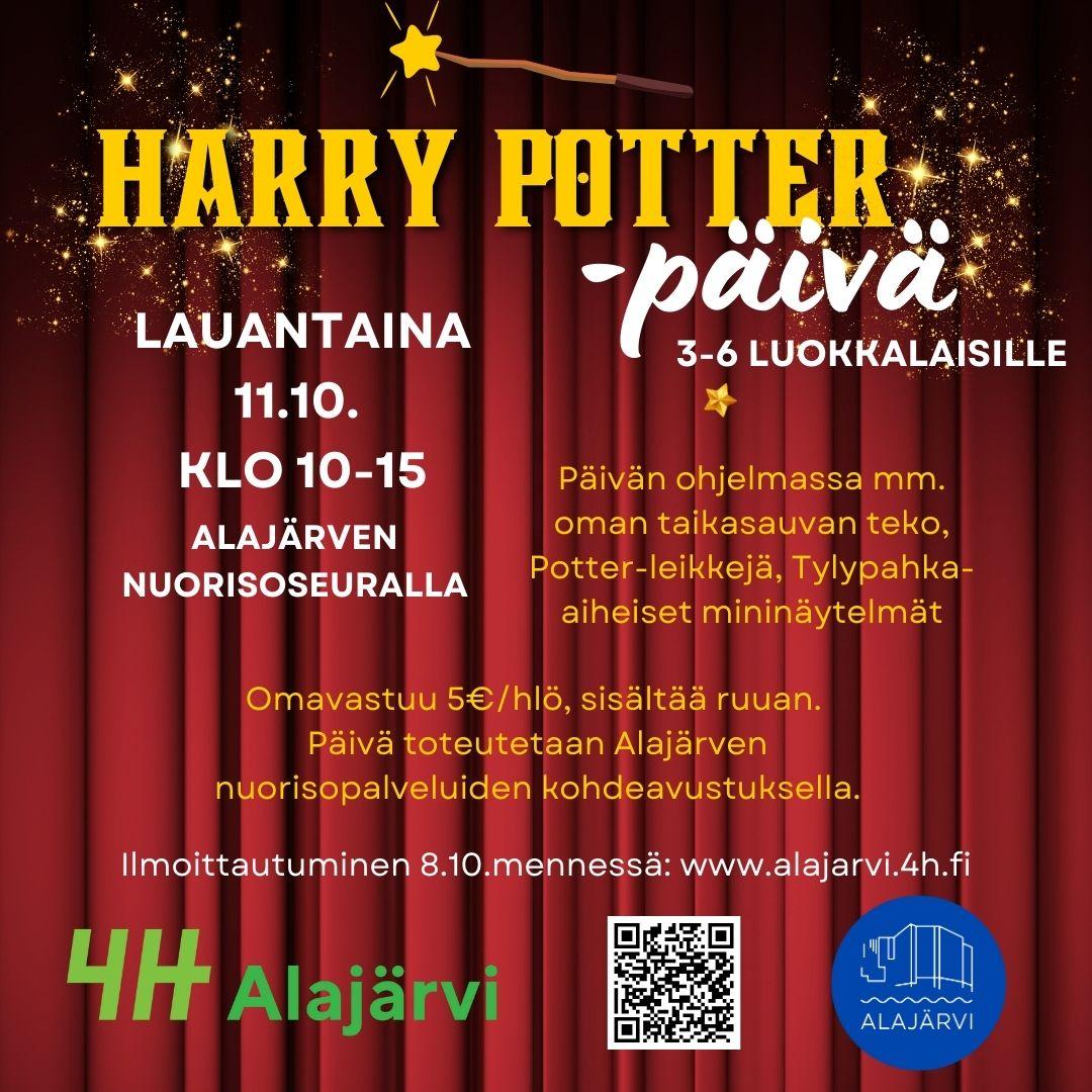Tervetuloa Harry Potter-päivään Alajärven Nuorisoseuralle lauantaina 11.10. klo 10-15. Päivä on tarkoitettu 3-6 luokkalaisille. Ennakkotiedoista poiketen päivän omavastuu on 5€/osallistuja. Päivään…