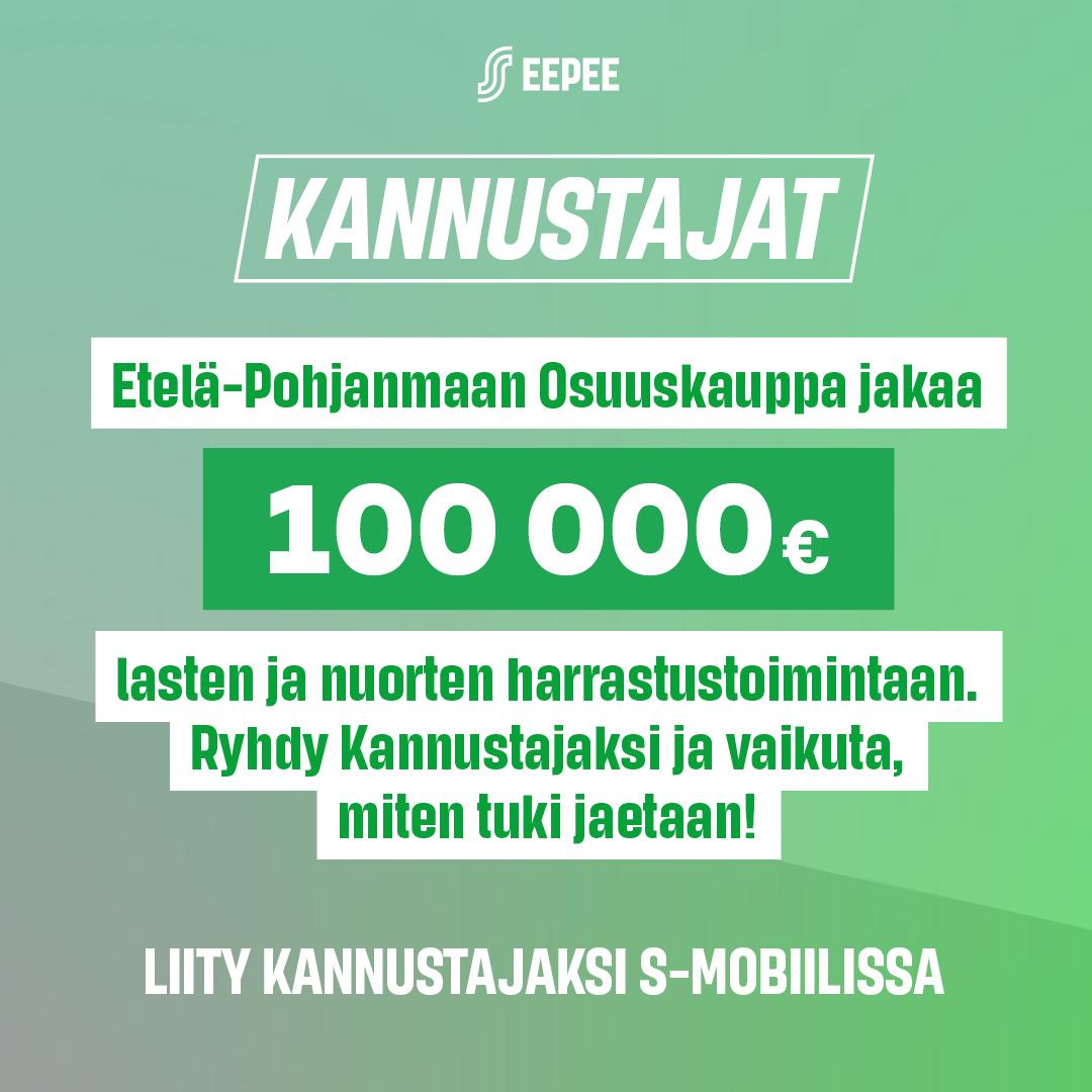 Pääset liittymään Kannustajaksi S-mobiilistasi. Valitse -> Minä -> omat tiedot -> Kannustajat -> valitse Alajärven 4H-yhdistys